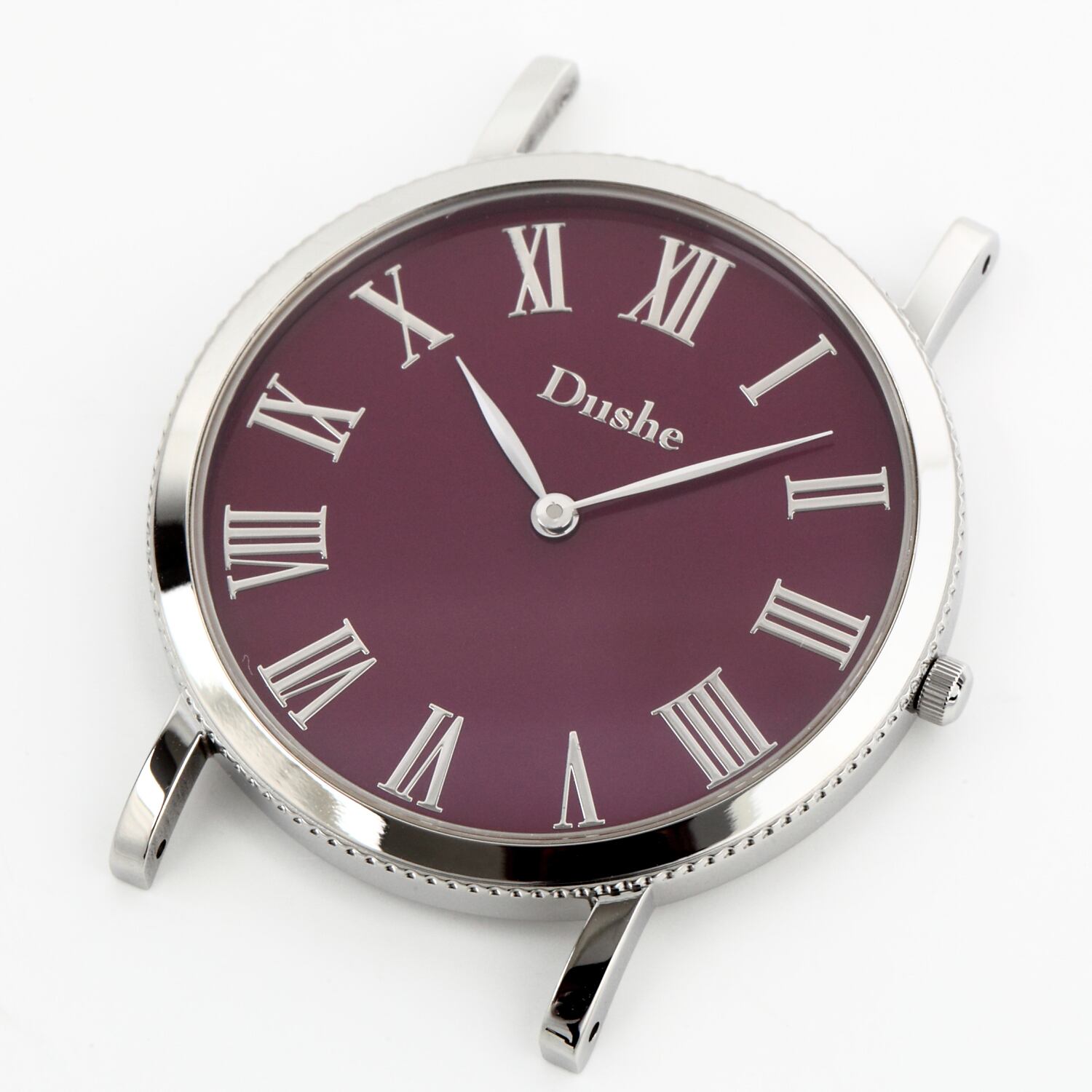 文字盤にはラップ加工(塗装後にさらに磨きをかける工程です)を施し、磁器の作品のような美しい輝きを表現しました。