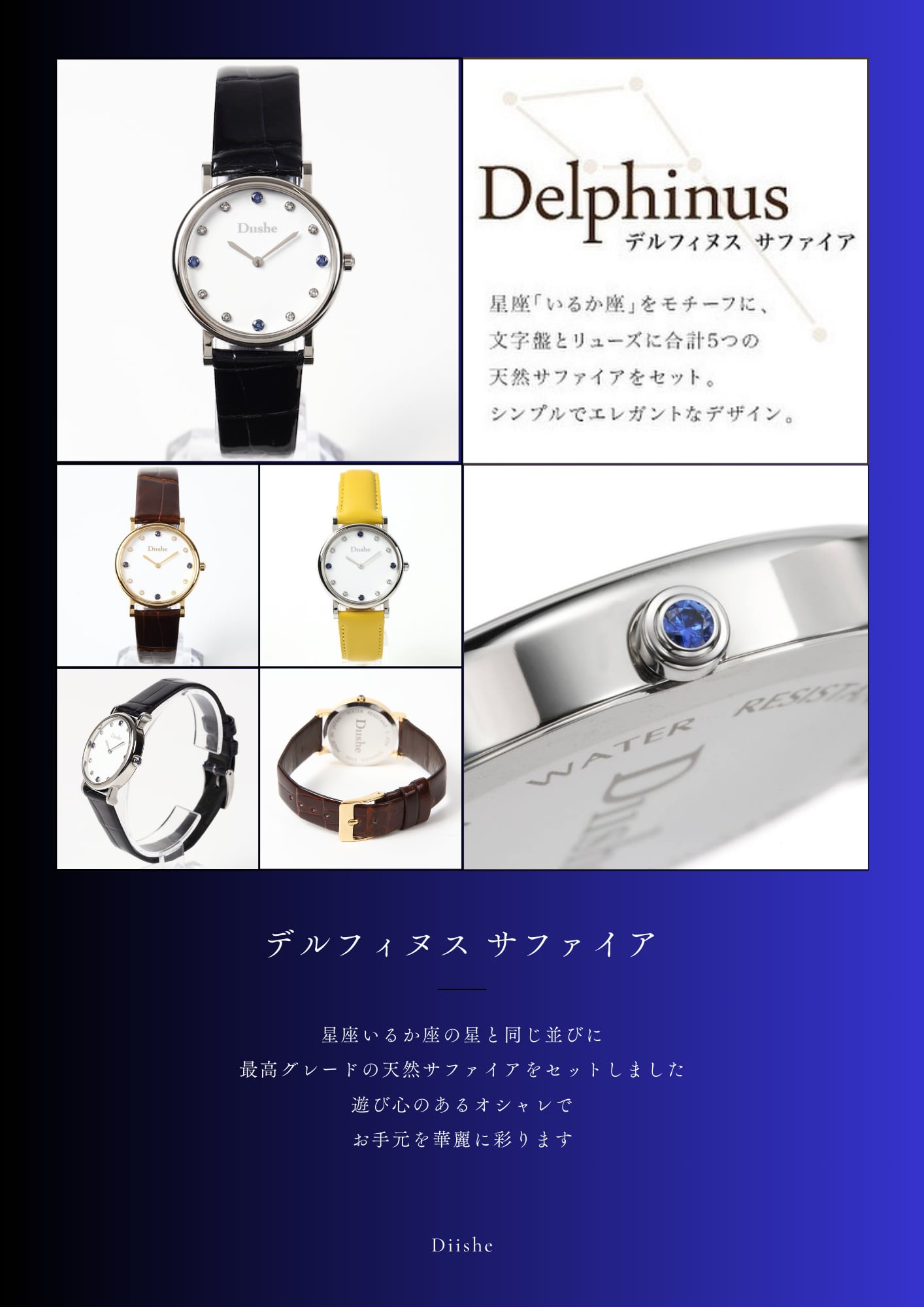 星座の腕時計「デルフィヌス サファイア」ドレスウォッチの商品説明を以下にご案内いたします!